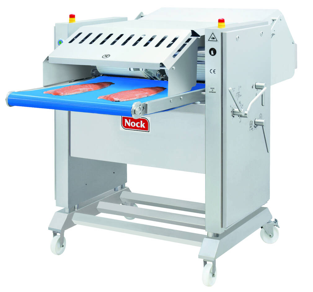 Designul cu role dure speciale din poliamidă pentru somon aplică presiune mai mare pe mijlocul fileului și mai redusă la margini → asigură depielițare profundă a mușchiului întunecat cu pierderi minime de carne.