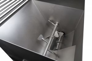 Bol de pre-amestecare de 360 de litri, prevăzut cu un vierme de alimentare a cărui rotație poate fi inversată împreună cu viermele de alimentare pentru un efect eficient de pre-amestecare.